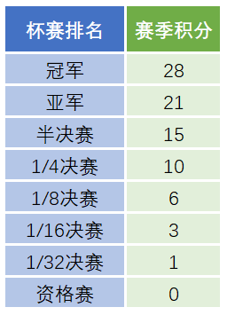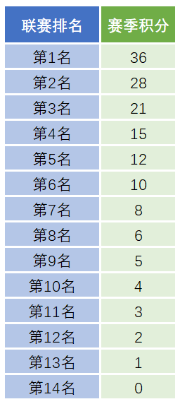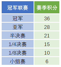 球队的联赛、杯赛和冠军联赛成绩会为玩家提供赛季积分,积分规则如下: